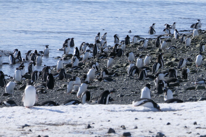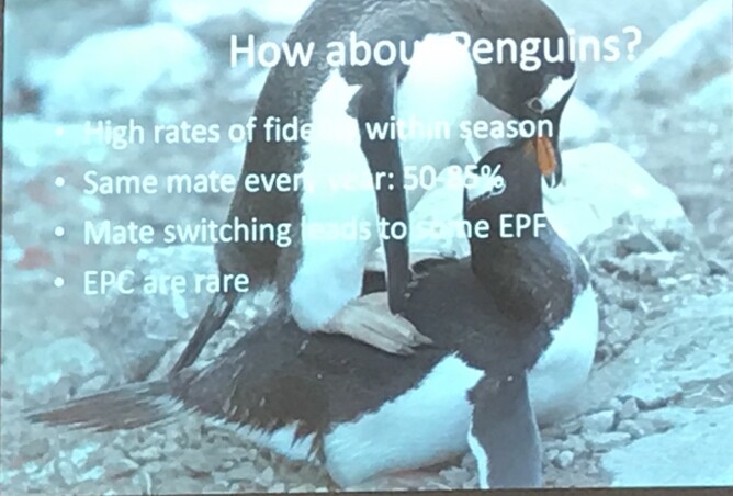 Team cooperation is necessary. Extra-pair copulation (EPC) does happen in penguin colonies, some more than others. (Another similarity with humans, Ed.) From Wikipedia: "Monogamy occurs when an individual has only one sexual partner at any one time, forming a long term bond and combining efforts to raise offspring together; extra-pair copulation occurs when one of these individuals mates outside of this pairing. Across the animal kingdom, extra-pair copulation is common in monogamous species, and only a very few pair-bonded species are thought to be exclusively sexually monogamous. EPC in the animal kingdom has mostly been studied in birds and mammals. A possible benefit of EPC is that males maximise their reproductive success by copulating with as many females as possible outside of a pair bond relationship because their parental investment is lower, meaning they can copulate and leave the female with minimum risk to themselves. Females, on the other hand, have to invest a lot more in their offspring; extra-pair copulations produce a greater cost because they put the resources that their mate can offer at risk by copulating outside the relationship. Despite this, females do seek out extra pair copulations, and, because of the risk, there is more debate about the evolutionary benefits for females." I found this YouTube video about the gentoo penguin.