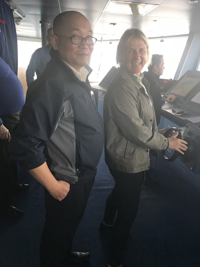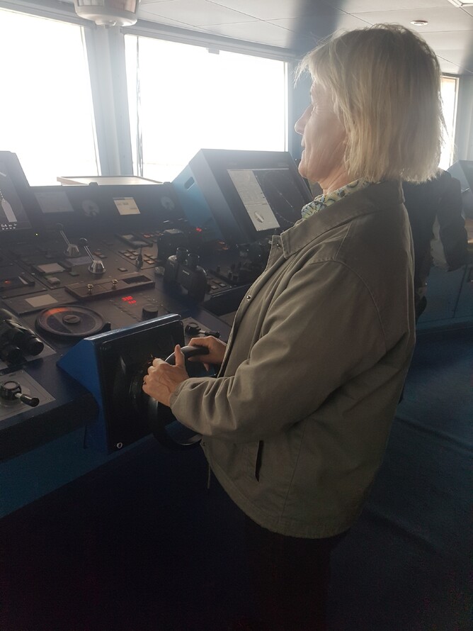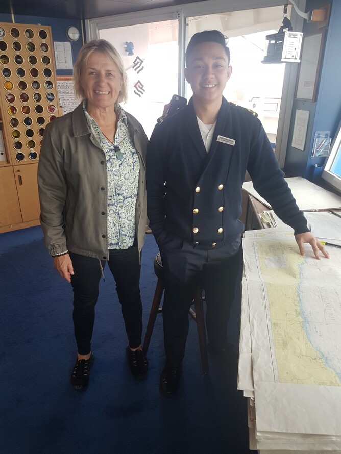 The bridge is open for us to visit. This is the Second Officer who keeps all the physical maps updated.