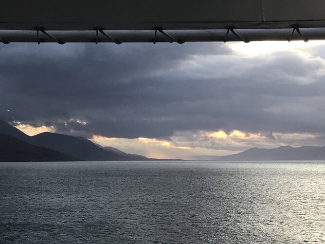 The Drake Passage was rough for a little while after our dinner, but we both slept well. Neither of us got seasick on either of our two trips. We had both taken a Sealegs pill every day. It was very calm through the Beagle Strait. We had woken at our normal 5am and I chose to finish my book. This is what I have been reading.