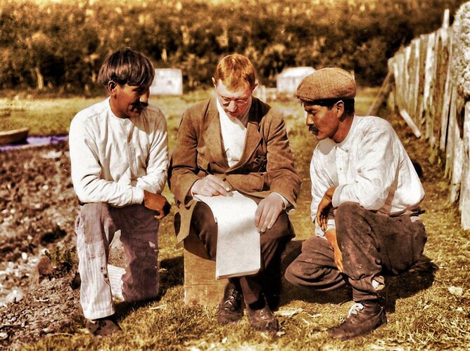 I admire all indigenous cultures for the way they have lived off the land sustainably. I envy the Ona's and Yaghans ability to understand all that was around them, and pass it down for 10,000 years. If only Europeans had done things differently and understood and respected that, we might have learnt off each other more. Maybe there will be a renaissance. This is Martin (a missionary interested in keeping their culture) with Yaghans - it was the only picture I could find of Europeans engaged with Yaghans in the 1900's - and you can see the Yaghans are looking anything but indigenous . . .