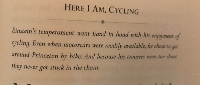 Reading the book, cycling, blogging, doing "The Trip" in a Les Mills spin class before coming on this trip (thanks daughter Anna for recommending it!) got me thinking about an idea. It amazes me how connected things can be and cycling creates the space to connect the dots I think. The book says that too. More about my idea later - to summarise the book first. Einstein loved bikes. Here are some bits from the book.