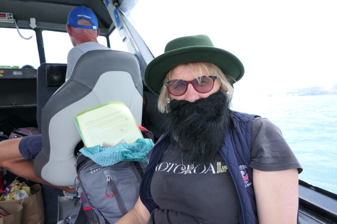 Luiza left the wharf at 6.10am as she had to get back to Auckland. She left with David in his Sea Legs to then catch the Waiheke ferry from Matiatia at 7.00am. Robin walked her down to the wharf. On the way back she saw takahe on the grass. Albert was the only one up early so the two of them went back down to see if it was still there, but it had gone.