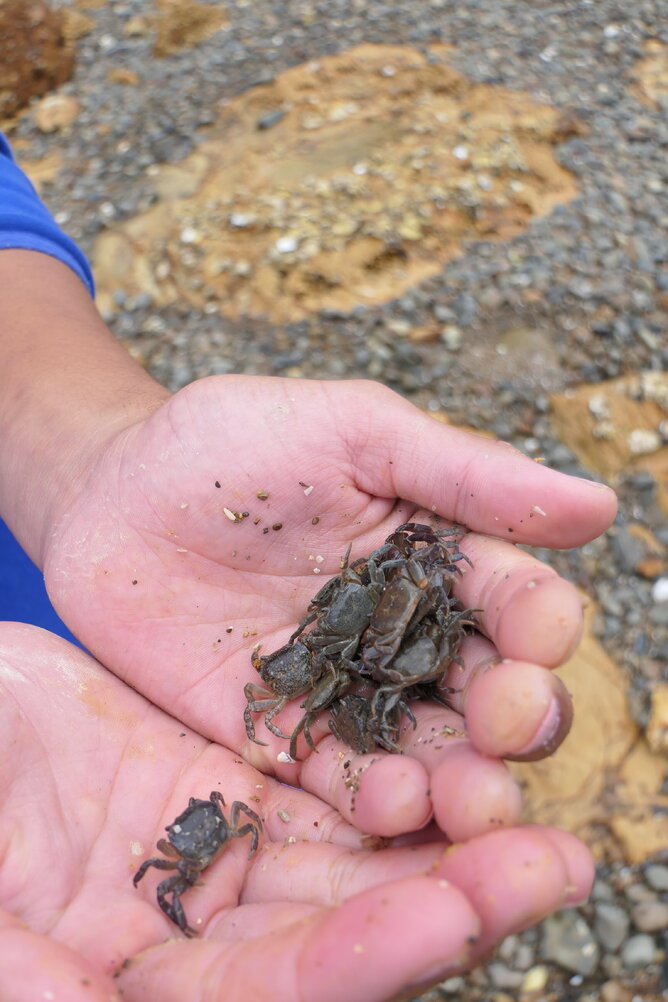 Then we all headed to do a 'Metre square'. (A 1mx1m square patch to survey an intertidal community of animals and plants that live there.) We found very little because it was mid-tide. We hunted for crabs under rocks anyway. We saw dotterels (one of their tricks is they camouflage so well) and torea (oyster catchers) and a torea chick. We surrounded the parent, maybe the Mum Torea and chick. Then Robin asked us to step away as we were not giving them space to have somewhere to go.