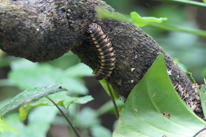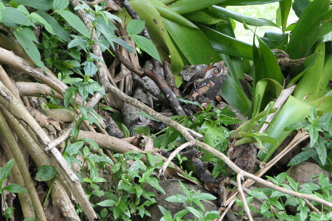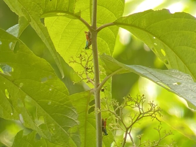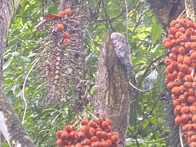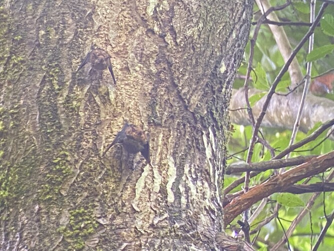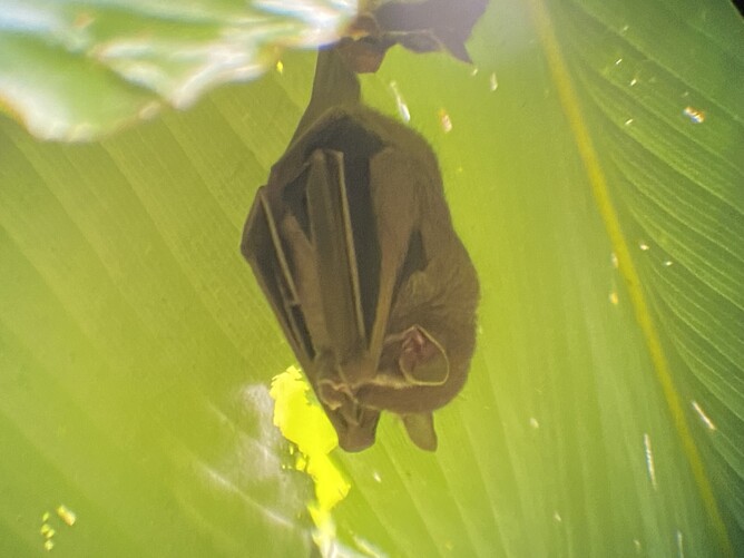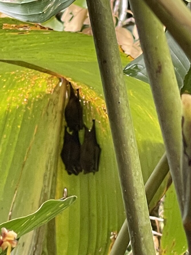 If you didn't have a guide I don't think you would see a thing. This is something I cant even see clearly in the photo. It is maybe a sloth-like bat? It is between two berry plants?